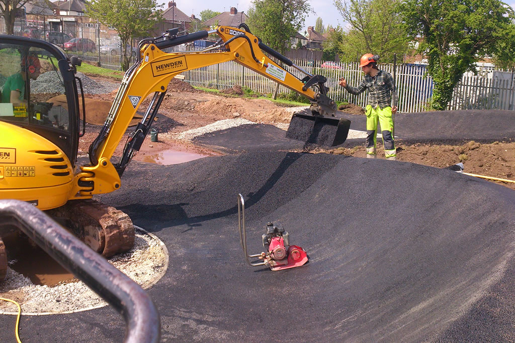 We aim to build safely and sustainably a range of designs that help push a riders confidence and skills as well as pushing the sport forward as a whole. Our team have specialist skills in the bike track services being able to form shapes using a mixture of plant and hand tools with a riders perspective. Being a team of builder riders we have an excellent vision of how shapes link and flow together which is imperitive for a finished product that rides correctly. We aim to build tracks to suit all ages, male and female alike. Manon Carpenter is used for consultancy and testing of all designs and builds. We use appropriate aggregates to surface and armour up the trails we construct and can offer consultancy on materials. The construction methods we use ensure that the tracks remain in a good condition well after the date of completion.